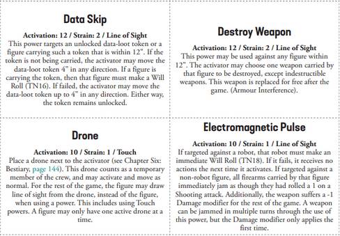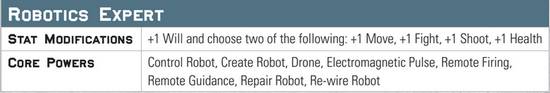 Et pour les amateurs de circuits imprimés qui voudraient inclure des robots dans leur équipage, la règle est simple : pour chaque soldat recruté, vous devrez décider si c’est un soldat « organique » ou un soldat robot. Ce choix est primordial, puisque certains pouvoirs n’affectent que les humains, d’autres uniquement les robots. Vous pourriez par exemple prendre le contrôle d’un robot adverse grâce au pouvoir Control Robot d’un expert en robotique !