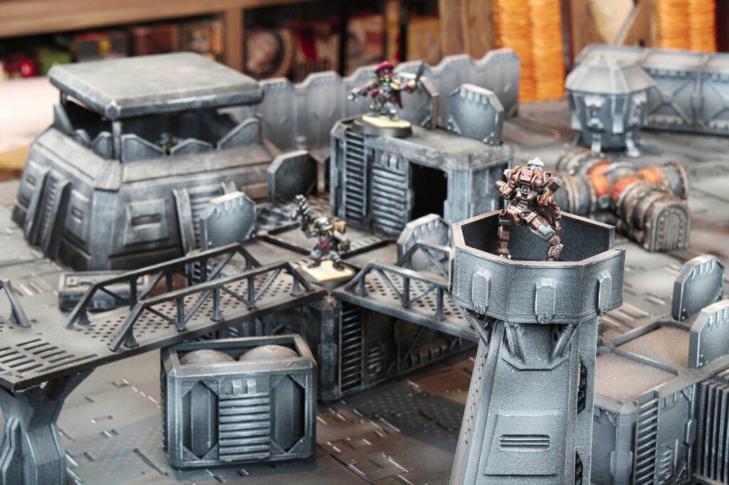 Ces Token Loot sont répartis sur une table de 3′ par 3′ (environ 90cm par 90cm), avec de nombreux décors vous permettant de cacher les lignes de vues. Ces Token Loot devront être transportés par vos figurines vers un bord de table pour être récoltés.